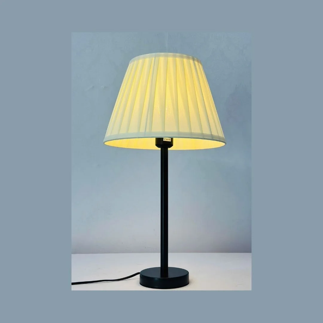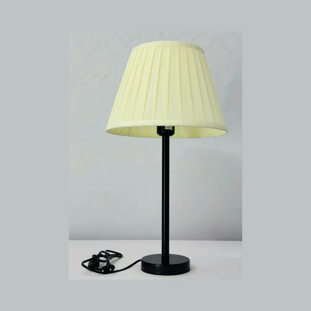 Đèn Bàn DB211 sở hữu thân đèn dạng trụ thẳng, thon gọn, giúp chiếc đèn không chiếm nhiều diện tích trên mặt bàn. Đế tròn nhỏ nhưng chắc, phù hợp cho cả những mặt bàn hẹp. Phần chao vải được thiết kế dạng hình nón cao, xếp ly đều xung quanh, tạo điểm nhấn mềm mại cho tổng thể. Khi bật sáng, ánh sáng vàng nhẹ xuyên qua lớp vải, tạo ra vùng sáng dịu, không chói, rất thích hợp dùng vào buổi tối.
