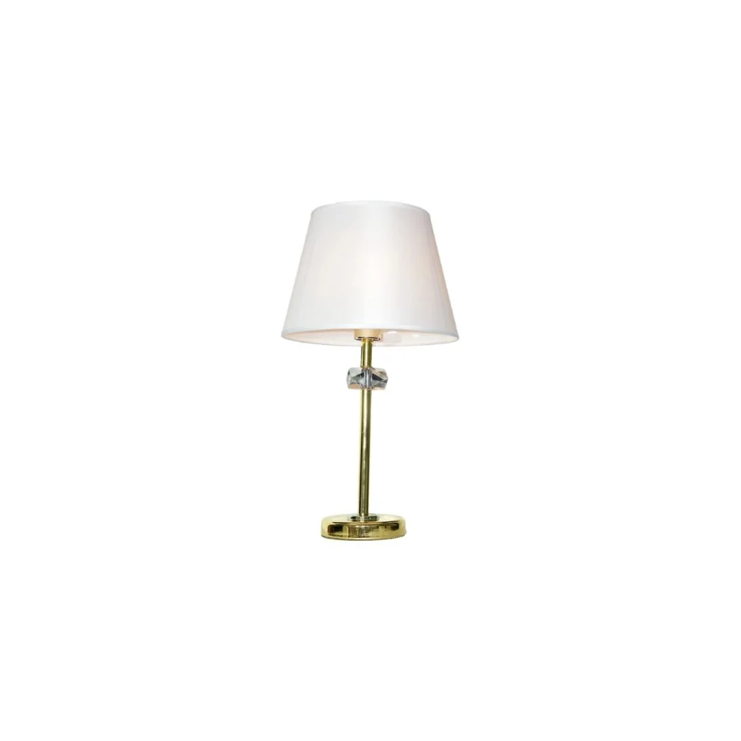 Thân đèn làm từ kim loại mạ vàng bền bỉ, chống gỉ sét, đi kèm chao đèn vải cao cấp giúp khuếch tán ánh sáng mềm mại. Chi tiết pha lê trong thiết kế tạo nên nét khác biệt sang trọng cho chiếc đèn bàn cao cấp này.