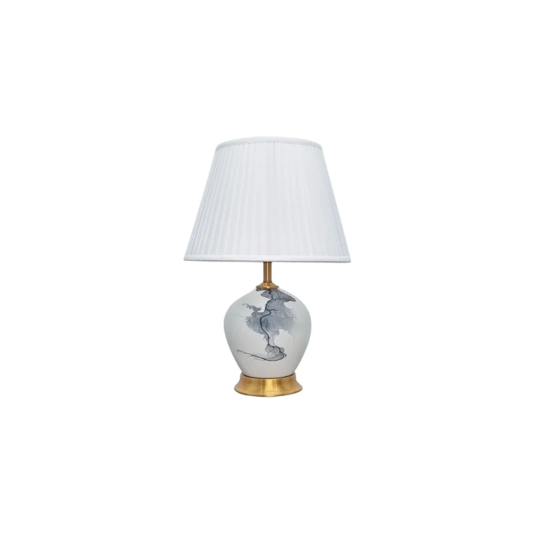 Đèn Bàn DB80 sở hữu phần thân gốm sứ họa tiết vẽ tay ấn tượng, tái hiện khung cảnh thiên nhiên mộc mạc mà đầy nghệ thuật. Chân đế kim loại mạ vàng champagne sáng bóng giúp sản phẩm trở nên nổi bật và thanh lịch hơn. Kết hợp cùng chao đèn vải trắng cao cấp, DB80 mang đến một tổng thể hài hòa, trang nhã – tiêu biểu cho xu hướng đèn bàn phong cách Bắc Âu hiện nay.