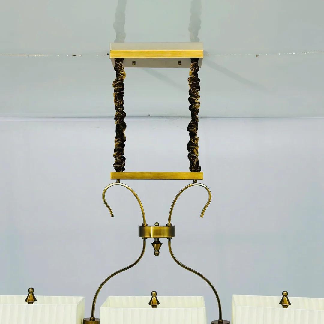 Đèn Chùm DC1001T6 là mẫu đèn chùm treo ngang phù hợp cho bàn ăn dài, đảo bếp hoặc khu vực sinh hoạt cần ánh sáng dịu và đều. Thiết kế khung tông đồng ấm kết hợp 3 chao vải trắng mang lại cảm giác thanh lịch, sạch sẽ và dễ phối nội thất. Dáng đèn trải dài theo chiều ngang giúp không gian nhìn cân đối hơn, đặc biệt với phòng có bố cục dài. Tham khảo thêm nhiều mẫu đèn chùm và đặt mua chính hãng tại 355 DECOR.