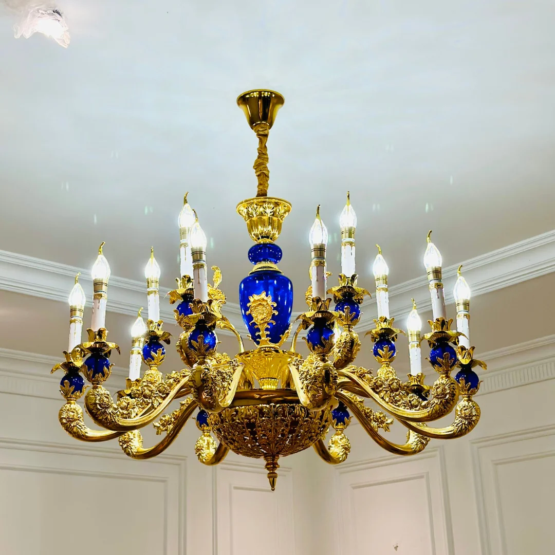 Pha lê cao cấp và hợp kim bền bỉ, cho ánh sáng phản chiếu lấp lánh và tạo không gian sang trọng, quý phái.