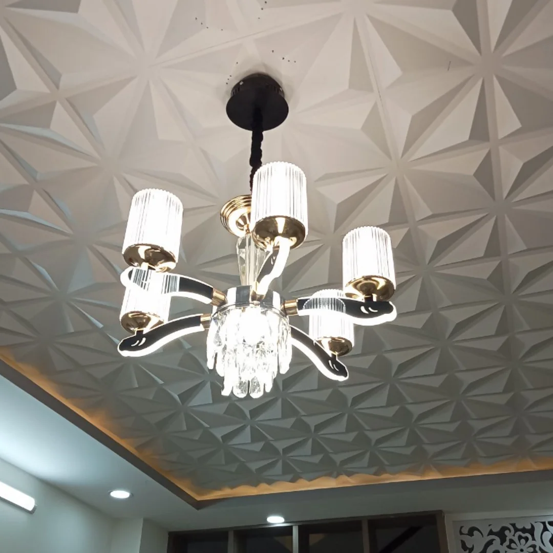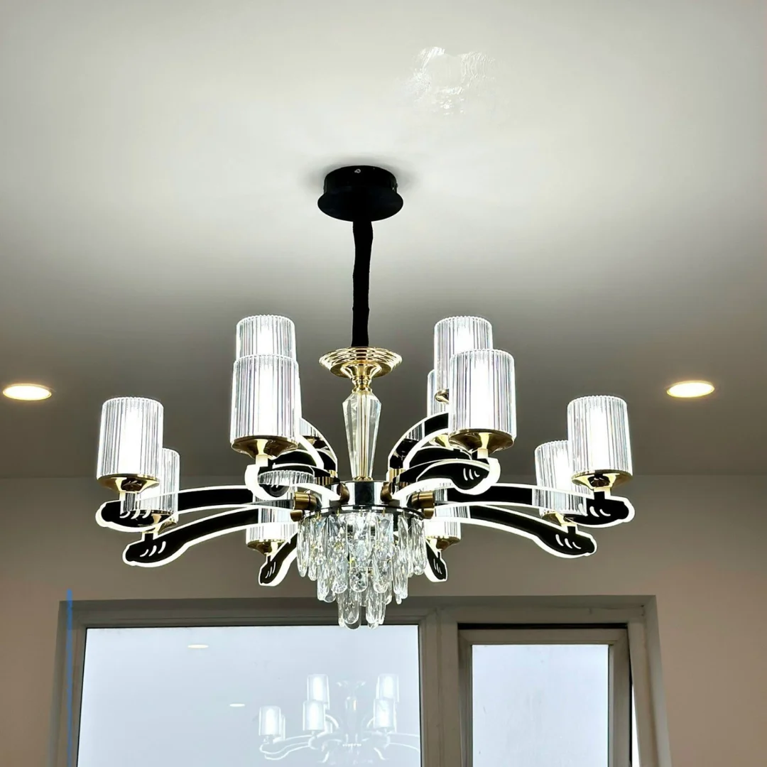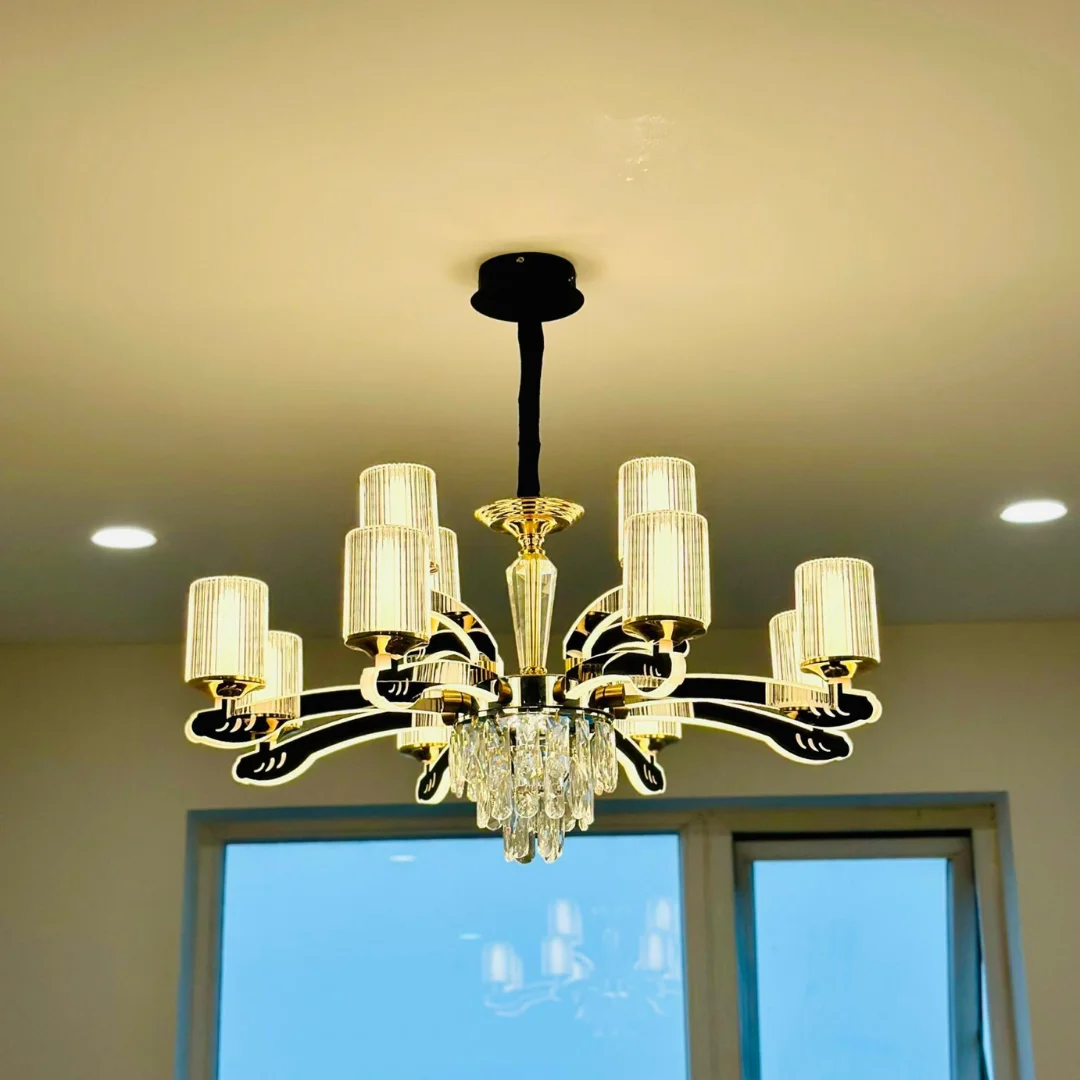 • Tăng thẩm mỹ khu vực trung tâm: Pha lê thả tạo điểm nhấn sang, giúp không gian có chiều sâu hơn.