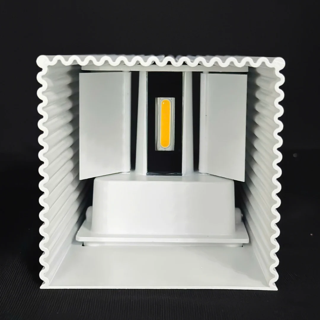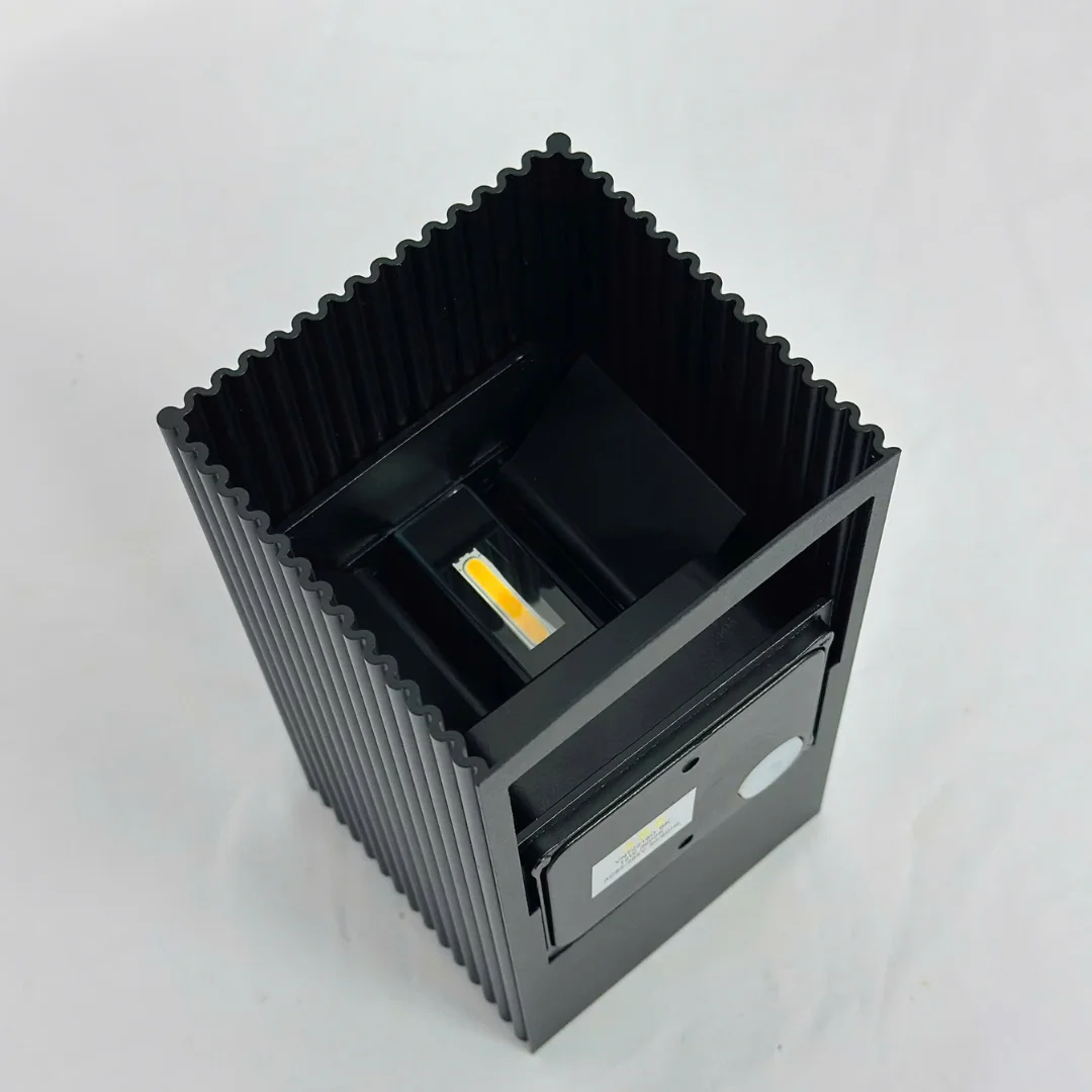 Đèn Hắc Tường VNT2216 sở hữu form hộp chữ nhật đứng, bề mặt kẻ sọc dọc đều tay giúp đèn nhìn “chắc” và tinh gọn khi gắn lên tường. Khi bật đèn, ánh sáng hắt 2 đầu tạo hai vệt sáng đối xứng, làm tường nổi khối và tạo cảm giác sạch sẽ, sang hơn cho khu vực lắp đặt. Kiểu ánh sáng này đặc biệt hợp những mảng tường dài như hành lang, lối đi hoặc khu vực cầu thang.