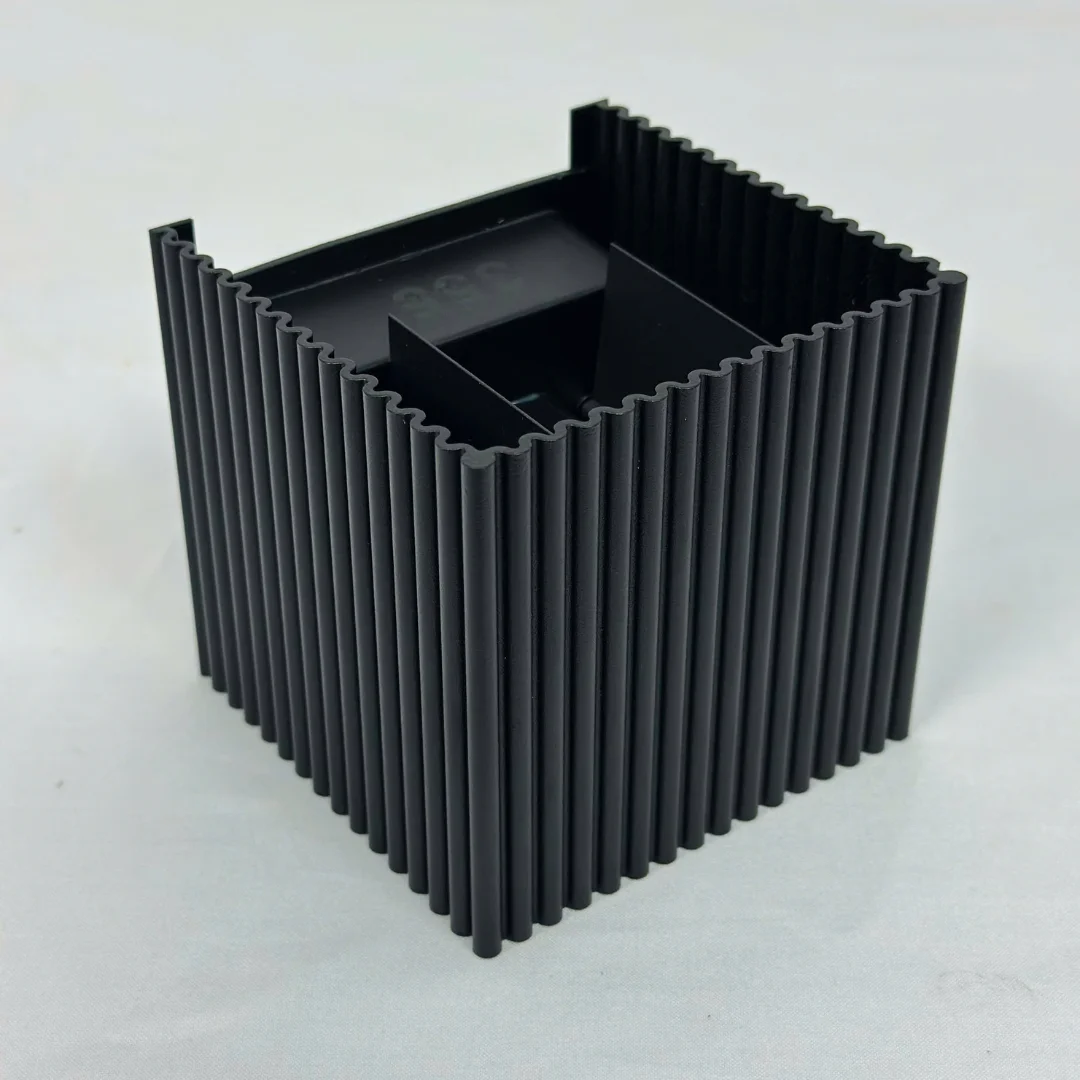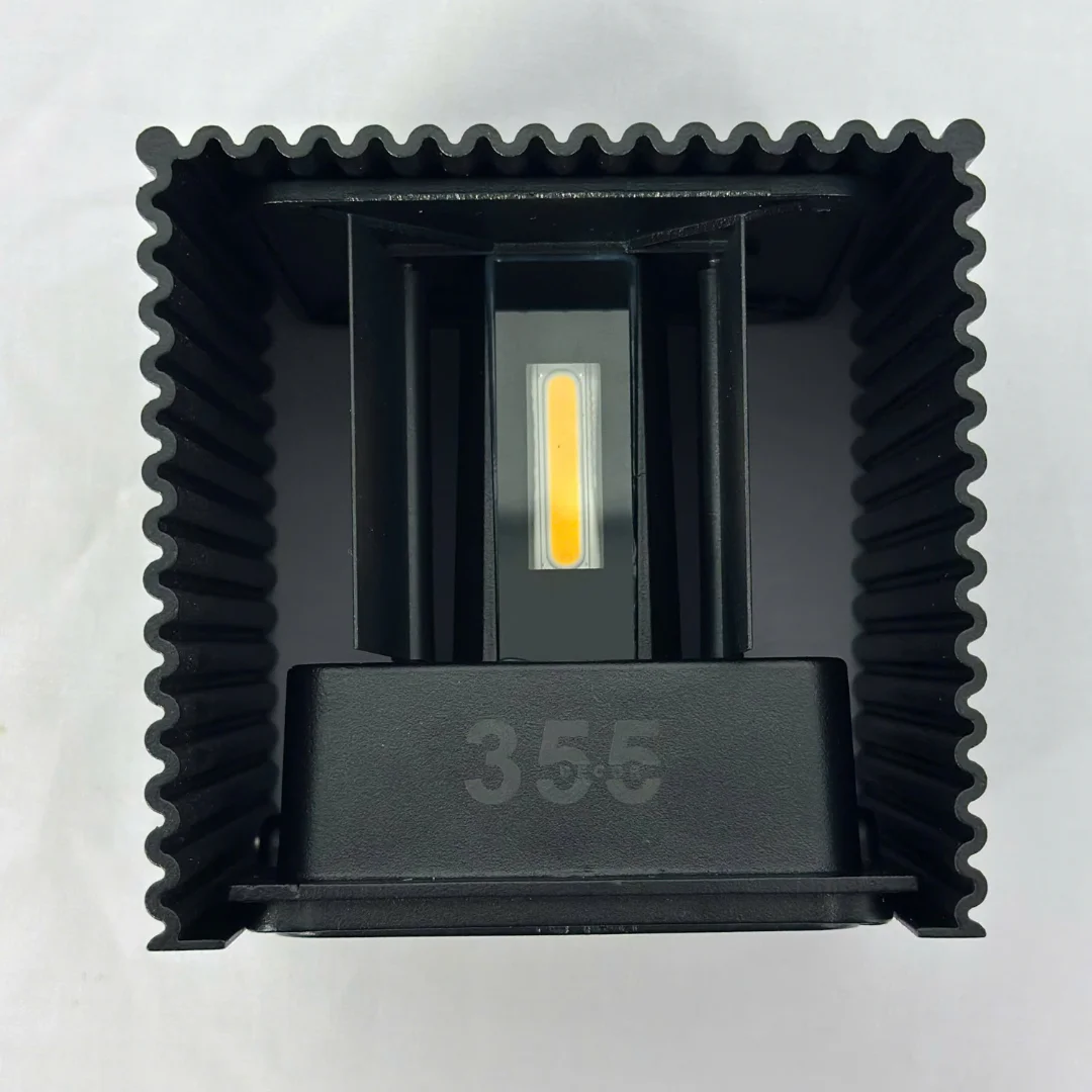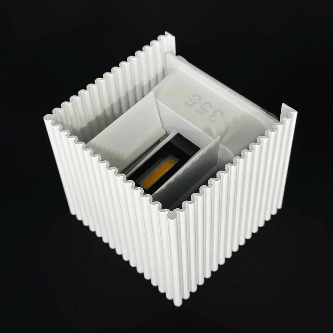 Đèn Hắt Tường VNT2215 có thiết kế khối vuông nhỏ gọn, bề mặt kẻ sọc dọc tạo cảm giác hiện đại và “chắc tay” khi nhìn gần. Điểm nổi bật nằm ở hiệu ứng ánh sáng: ánh sáng 3000K vàng ấm hắt ra tạo vùng sáng mềm trên tường, giúp mảng tường trông nổi khối mà không bị chói.