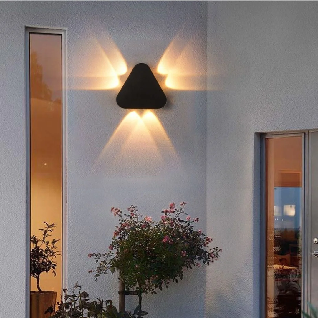 Đèn hắt tường VNT290 có kiểu dáng tam giác bo tròn mềm mại, nhỏ gọn nhưng rất thu hút khi gắn trên tường. Bề mặt màu đen nhám mang đến cảm giác hiện đại, chắc chắn và giúp sản phẩm dễ hòa hợp với nhiều phong cách kiến trúc khác nhau. Điểm nổi bật của mẫu đèn này là hiệu ứng ánh sáng hắt đối xứng lên xuống, tạo thành những dải sáng rõ nét trên bề mặt tường. Khi bật đèn vào buổi tối, khu vực lắp đặt trở nên sinh động hơn, có chiều sâu hơn và tăng cảm giác sang trọng cho không gian ngoại thất.