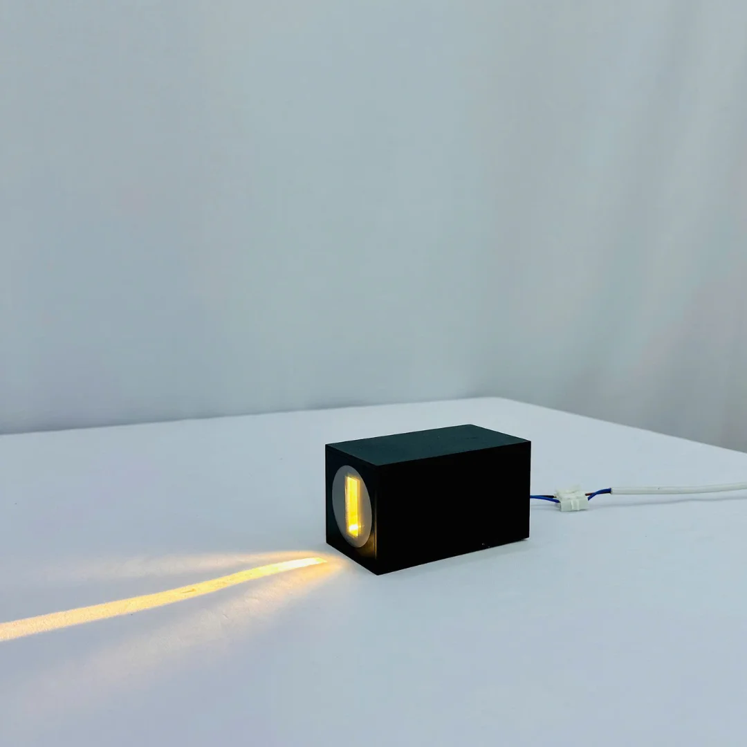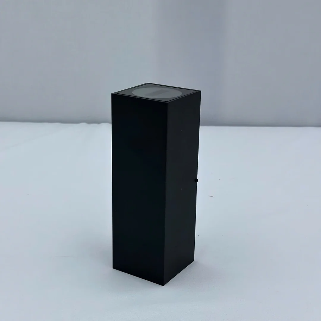 Đèn Hắt Tường VNTBD105 có thiết kế dạng khối đứng nhỏ gọn, bề mặt phẳng và các cạnh được xử lý dứt khoát, tạo cảm giác hiện đại và mạnh mẽ ngay từ cái nhìn đầu tiên. Phần thân đèn tuy tối giản nhưng lại rất nổi bật nhờ cách bố trí ánh sáng theo hai hướng đối lập. Khi bật sáng, đèn tạo thành các dải sáng kéo dài lên phía trên và xuống phía dưới, giúp mảng tường trở nên sinh động hơn mà vẫn giữ được sự tinh tế.