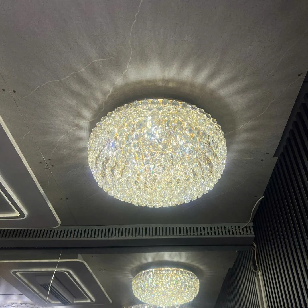 Đèn Ốp Trần Pha Lê OTPL578 có thiết kế dạng tròn áp sát trần, tổng thể cân đối và gọn gàng, phù hợp với nhiều kiểu trần phổ biến hiện nay. Bề mặt đèn được phủ dày bởi các chi tiết pha lê trong suốt, tạo nên vẻ ngoài rực rỡ và cuốn hút. Khi bật sáng, các lớp pha lê phản chiếu ánh sáng nhiều chiều, mang lại cảm giác ấm áp, sang trọng và làm nổi bật khu vực lắp đặt.