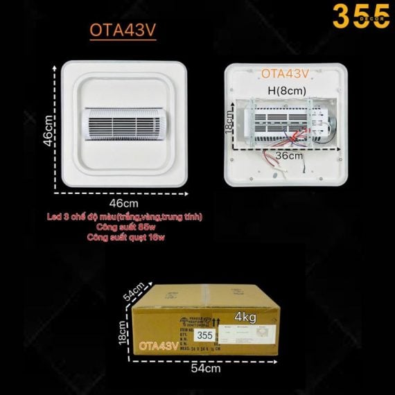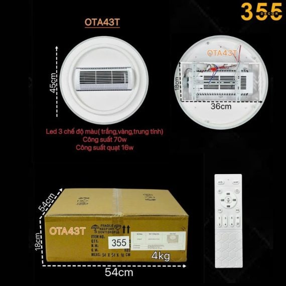 Thông số kỹ thuật đèn quạt ốp trần OTA43: