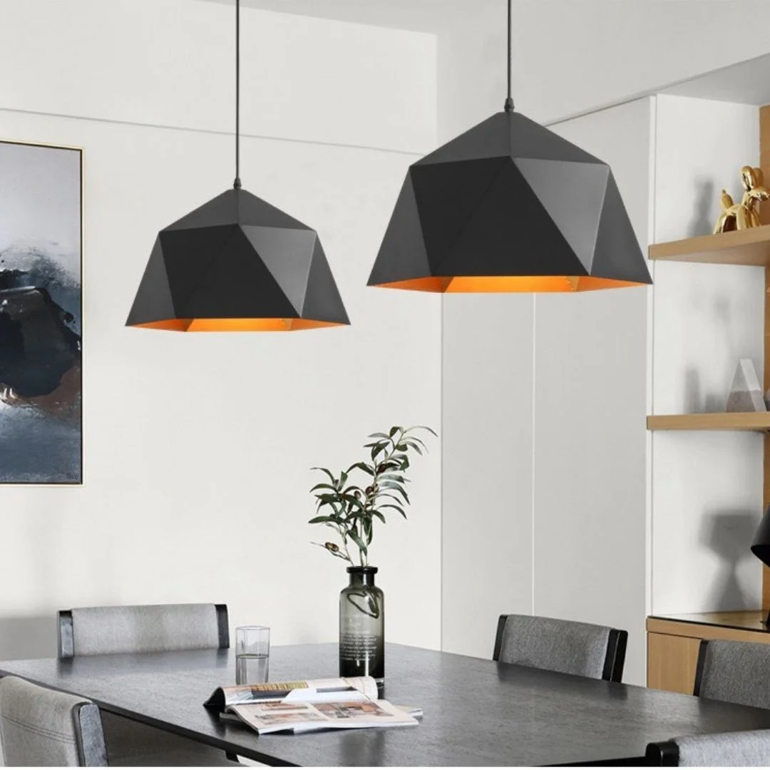 Đèn thả cafe TCF74DEN gây ấn tượng mạnh với phần chụp đèn dạng đa giác, các mặt cắt gãy gọn tạo nên tổng thể sắc nét và có tính tạo hình cao. Thiết kế này giúp mẫu đèn trông hiện đại hơn, cá tính hơn và đặc biệt phù hợp với những không gian theo đuổi phong cách contemporary hoặc industrial pha tối giản. Khi treo phía trên bàn ăn hoặc khu vực bàn cafe, sản phẩm tạo nên điểm nhìn rất rõ, từ đó giúp tổng thể không gian trở nên có gu và chuyên nghiệp hơn.
