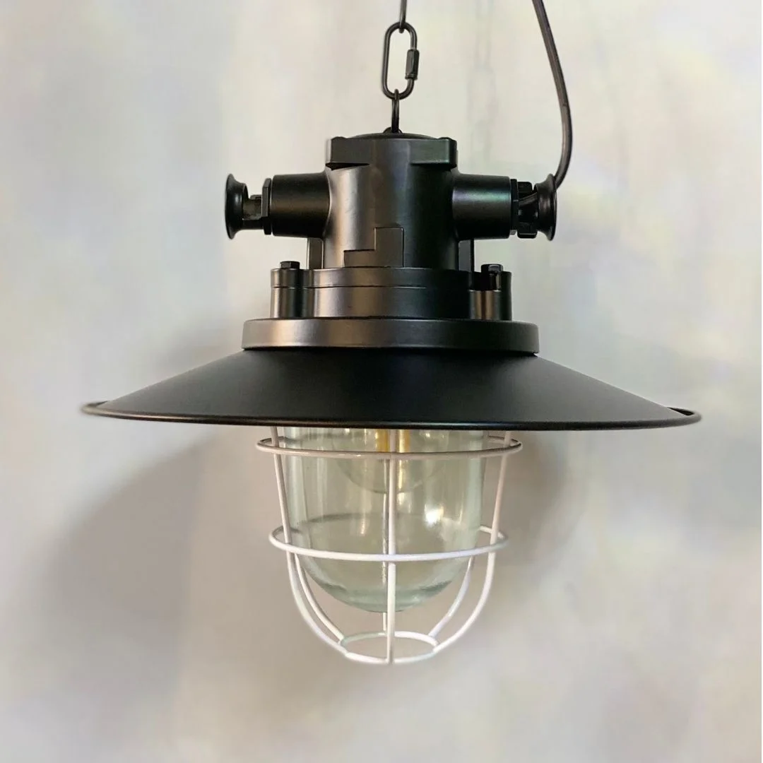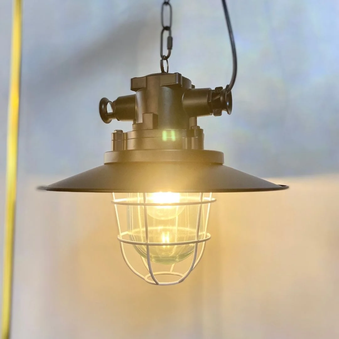TCF92 có phần thân đèn phía trên được tạo hình như một chi tiết cơ khí, kết hợp với chụp đèn tròn bản rộng và lồng bảo vệ bóng phía dưới. Thiết kế này giúp sản phẩm mang đến cảm giác mạnh mẽ, có chiều sâu và rất phù hợp với các không gian theo đuổi phong cách industrial hoặc vintage hiện đại. Khi đèn được thắp sáng, vùng sáng tập trung ở khu vực bên dưới tạo cảm giác ấm hơn, đồng thời phần lồng bảo vệ cũng làm tăng tính trang trí cho tổng thể.