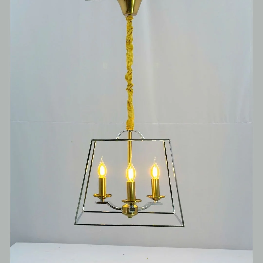Mẫu đèn thả đồng TD11 sở hữu thiết kế khung hình học dạng mở với các đường nét thanh mảnh. Tạo nên tổng thể nhẹ, thoáng và có độ cân đối cao. Bên trong là cụm 3 bóng kiểu nến được bố trí hài hòa. Gợi cảm giác cổ điển châu Âu nhưng không quá cầu kỳ. Nhờ đó sản phẩm vừa có nét sang trọng vừa đủ linh hoạt. Khi treo trong không gian, đèn tạo nên một điểm nhấn tinh tế. Đặc biệt phù hợp với bàn ăn nhỏ, hành lang, góc đọc sách, sảnh đón hoặc phòng khách theo phong cách modern classic, farmhouse, tân cổ điển hay nội thất thanh lịch hiện đại.