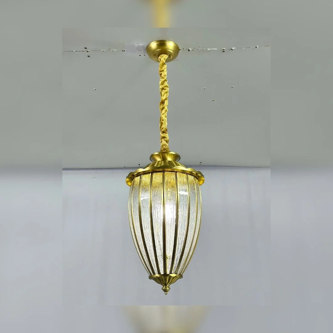Đèn Thả Đồng TD41 có phần chao tạo hình bầu thuôn, được chia bởi nhiều nan đồng chạy dọc, gợi nhớ đến những chiếc đèn châu Âu cổ điển. Phần nắp đèn phía trên được dập gân mềm, tạo cảm giác bồng bềnh, nhẹ nhàng nhưng vẫn sang trọng. Khi treo trên trần, toàn bộ chiếc đèn giống như một chiếc đèn lồng bằng đồng, vừa lạ mắt vừa rất tinh tế.