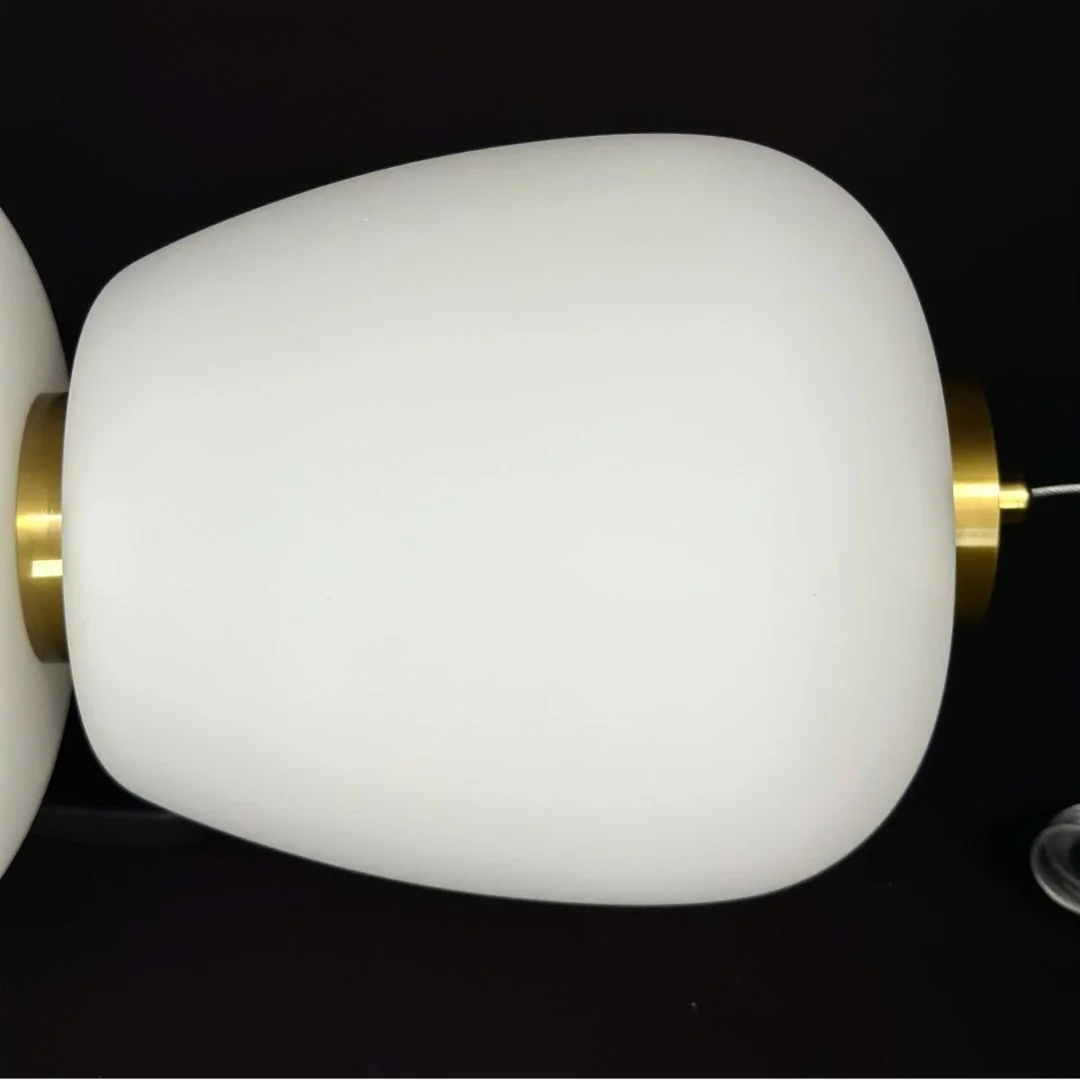 - Chất liệu: Khung thân hợp kim xi vàng, chao acrylic màu trắng đục