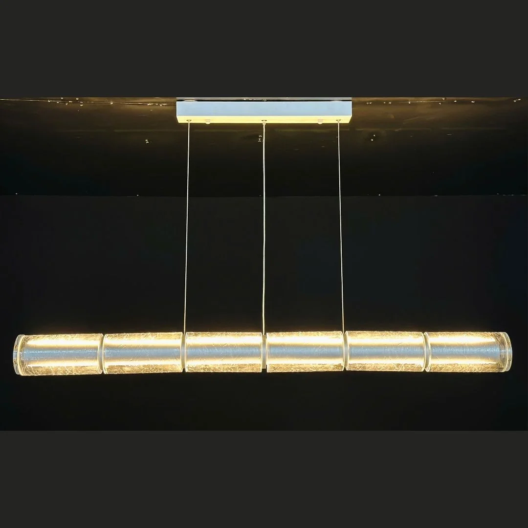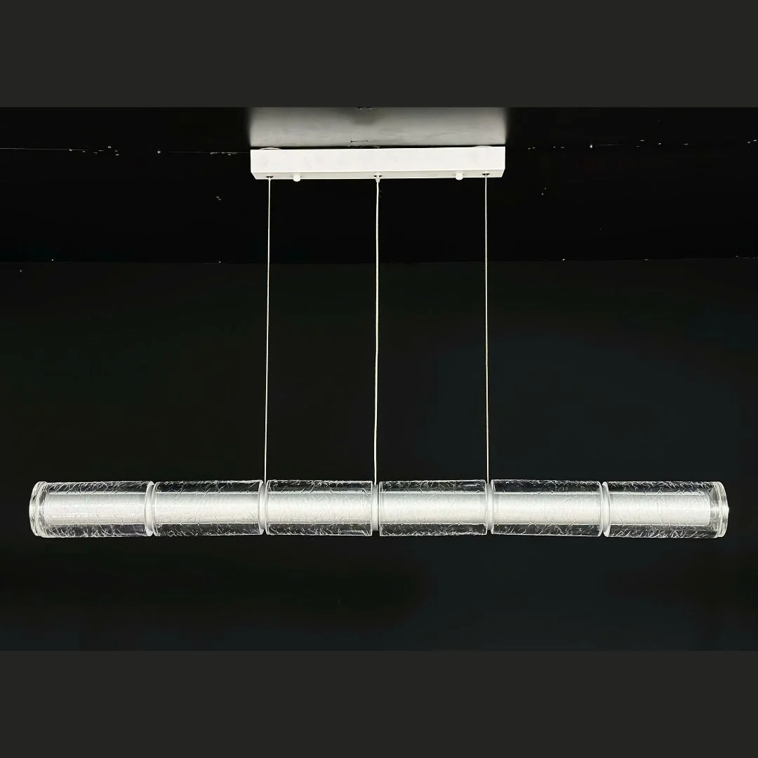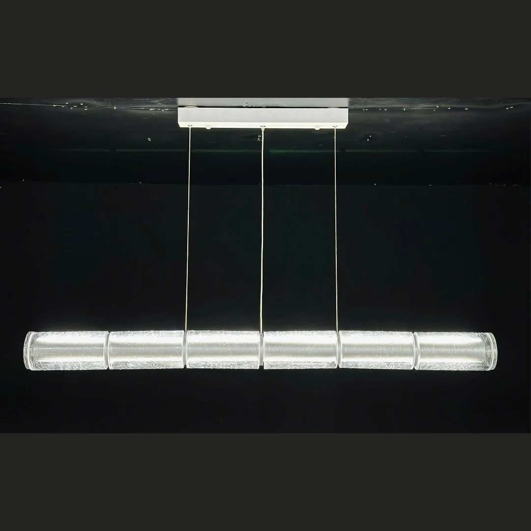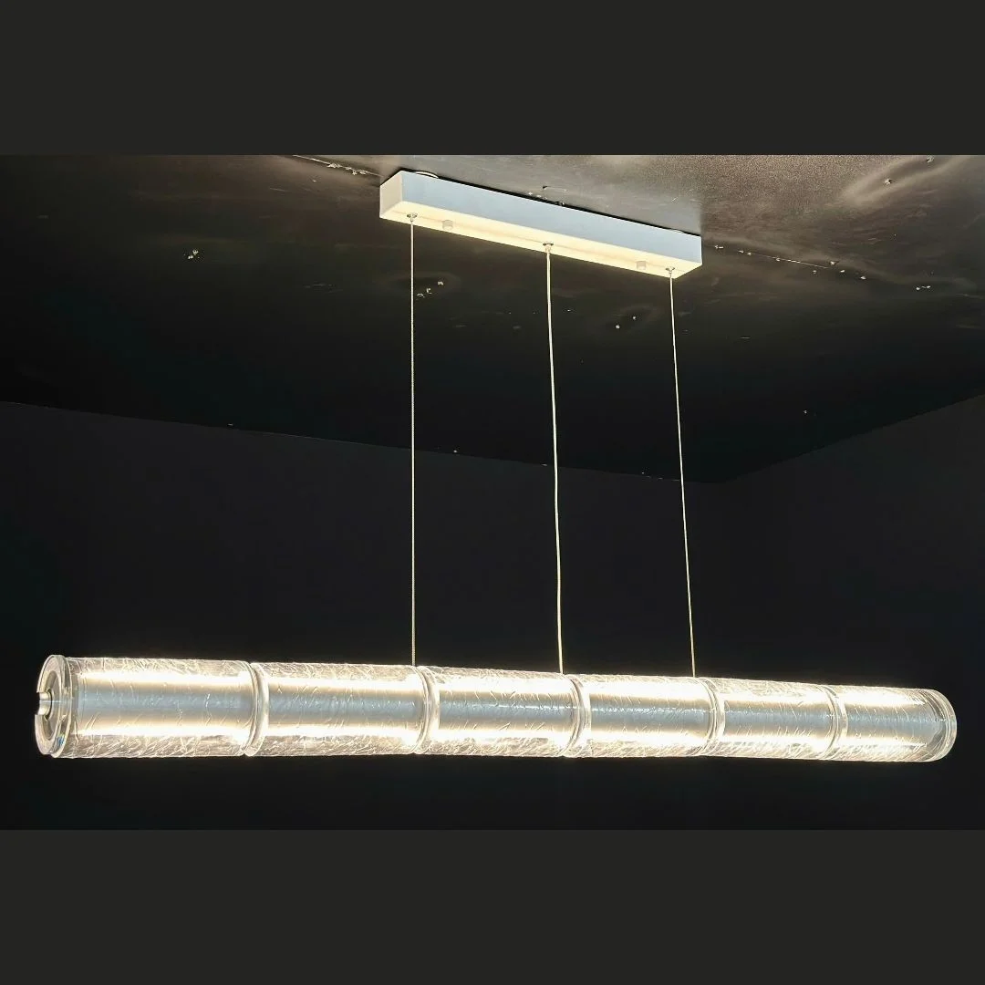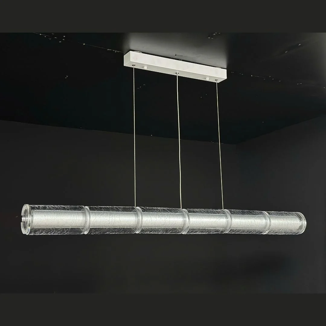 Đèn Thả Hiện Đại THD42 sử dụng thân đèn dạng ống dài 1,2 m chạy song song theo chiều dài bàn, tạo nên một đường sáng rõ ràng và dứt khoát trong không gian. Hai sợi cáp treo mảnh nối thân đèn với đế trần giúp tổng thể trở nên thanh thoát, phù hợp với phong cách nội thất tối giản. Phần chao thủy tinh mờ bao bọc quanh cụm LED tạo bề mặt sáng đều, không lộ nguồn sáng trực tiếp. Khi bật đèn, ánh sáng trải dọc toàn thân ống, làm nổi bật khu vực bàn ăn hoặc mặt bàn phía dưới một cách nhẹ nhàng nhưng hiệu quả.