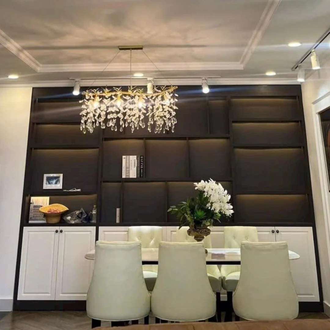 - Thiết kế sang trọng: Pha lê lấp lánh kết hợp với khung hợp kim giúp sản phẩm nổi bật, tạo điểm nhấn hoàn hảo cho không gian.