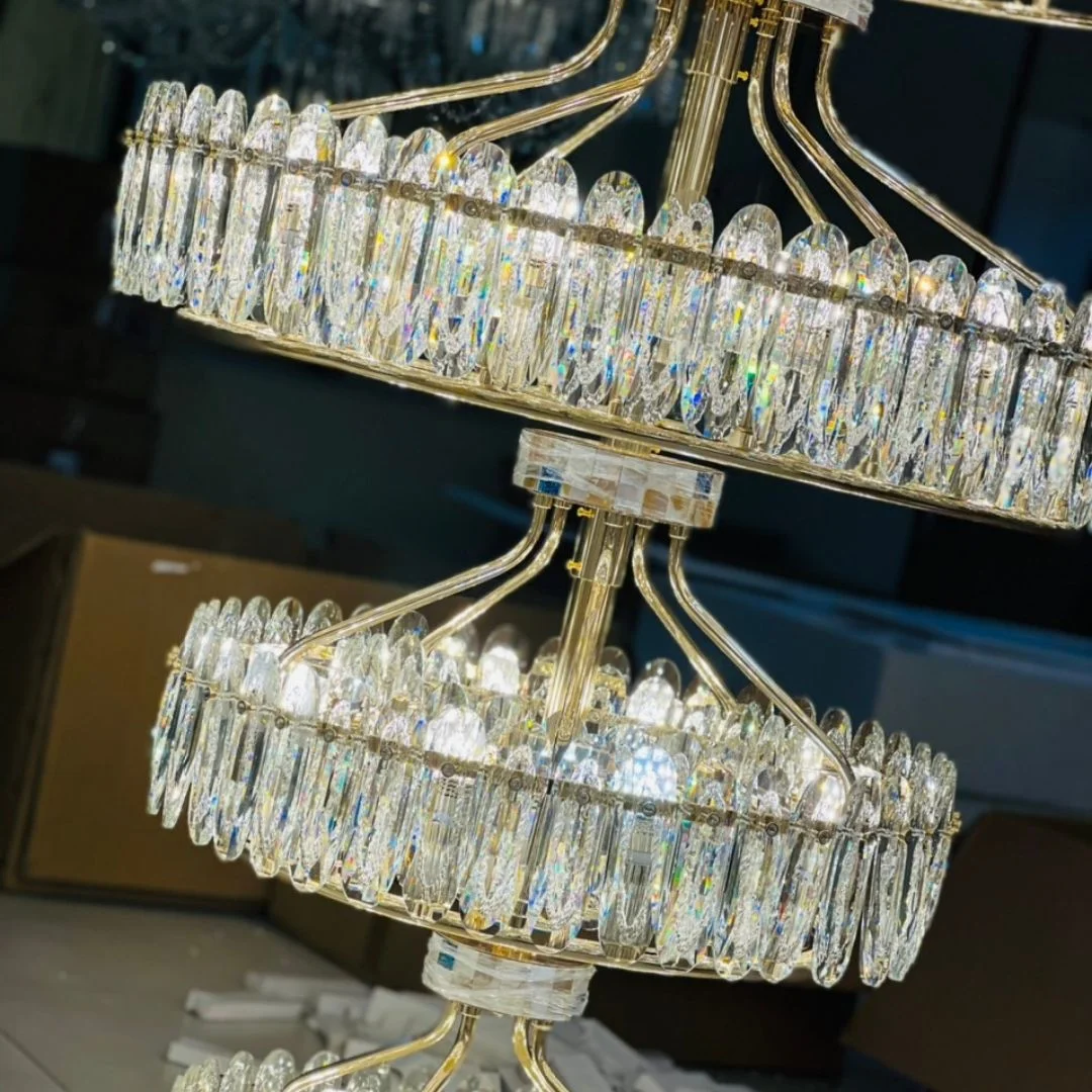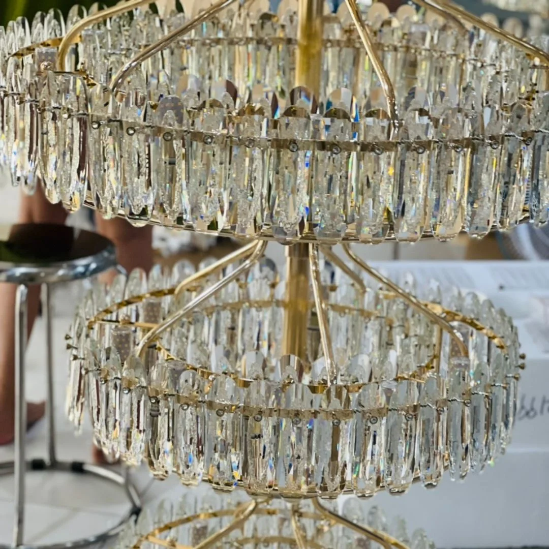 Đèn Thả Pha Lê TPL2199T5 từ 355 DECOR mang đến cảm giác sang trọng theo kiểu “đèn trung tâm” dành cho không gian lớn. Form 5 vòng xếp tầng tạo hiệu ứng thị giác mạnh, giúp trần cao bớt trống và tổng thể căn phòng trở nên bề thế hơn. Khi bật sáng, ánh sáng phản chiếu qua pha lê K9 tạo độ lấp lánh liên tục, phù hợp cho sảnh, thông tầng, showroom hoặc phòng khách rộng. Đây là mẫu Đèn Thả Pha Lê phù hợp với người thích một thiết kế rõ điểm nhấn và nhìn “đắt” ngay từ xa.