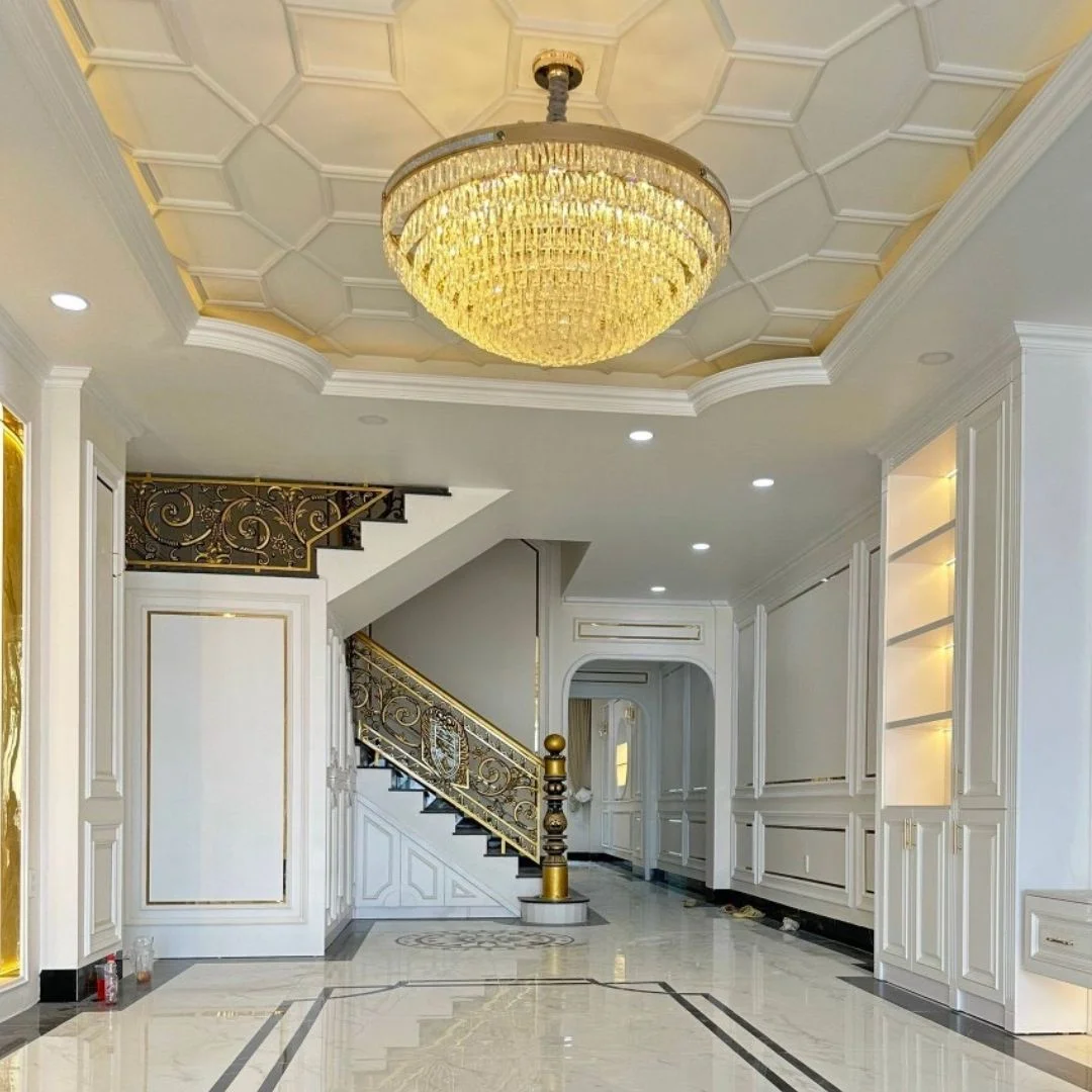 - Hiệu ứng pha lê K9 giúp không gian sang hơn rõ rệt, tạo điểm nhấn “đắt” khi nhìn vào.