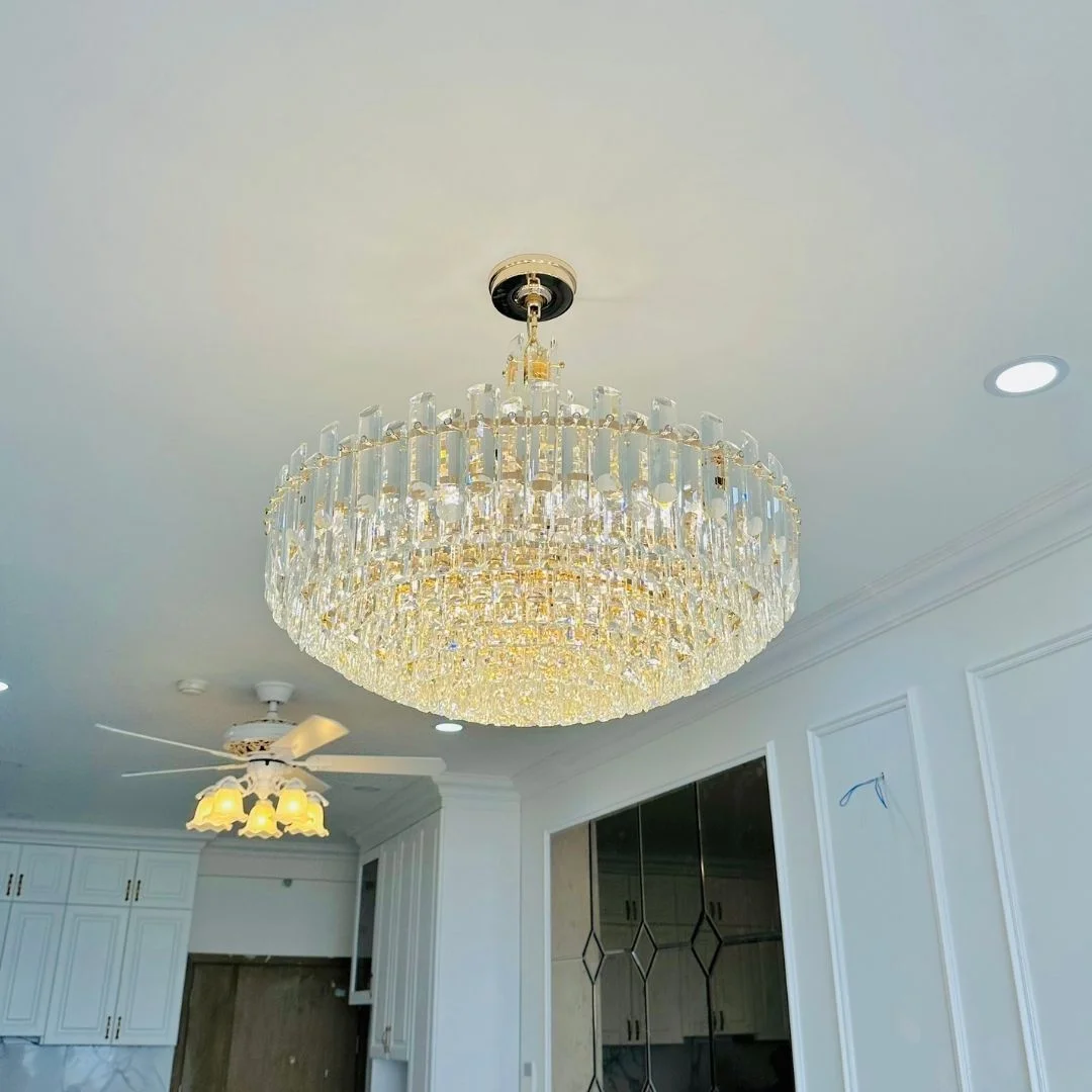 • Ánh sáng phản chiếu qua pha lê K9 giúp phòng trông sáng và sang hơn, đặc biệt phù hợp khu vực tiếp khách.