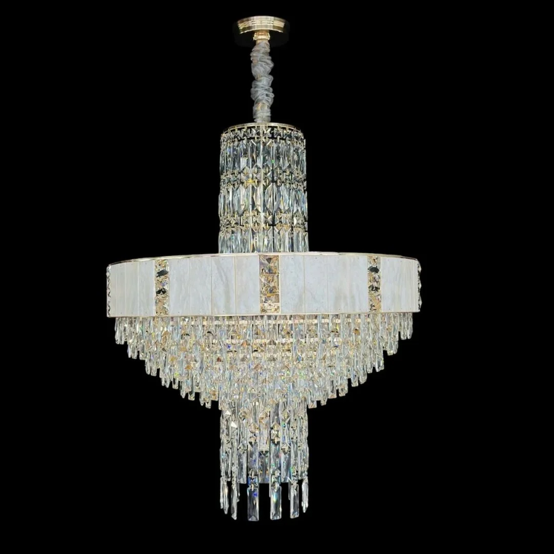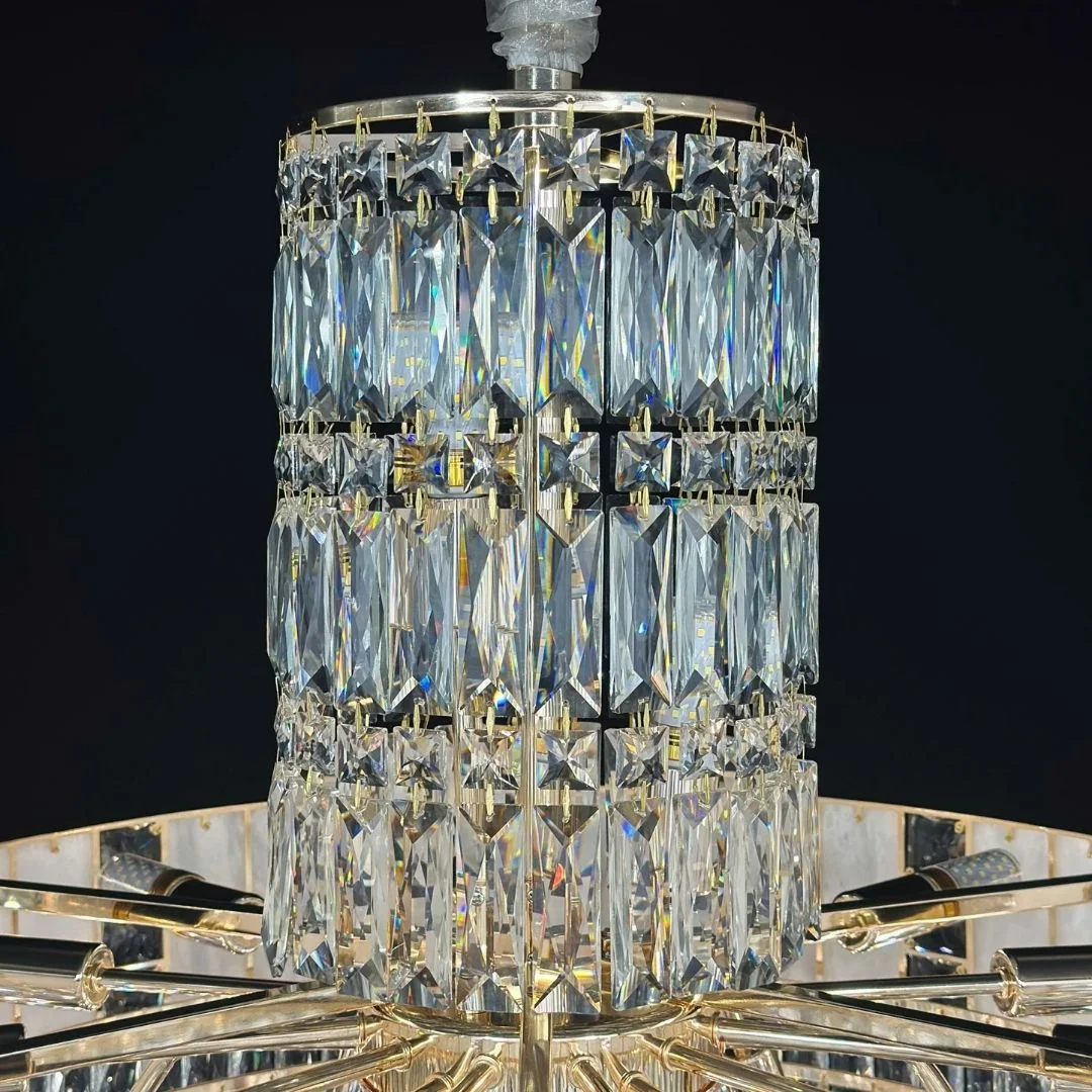 Đèn thả pha lê TPL817 gây ấn tượng bởi cấu trúc dạng tầng: phần vành đèn tạo cảm giác gọn và chắc, bên dưới là lớp pha lê rủ dày giúp ánh sáng lan tỏa mềm và có chiều sâu. Khi bật đèn, bề mặt pha lê phản chiếu đa hướng tạo hiệu ứng lấp lánh rõ rệt, phù hợp không gian tiếp khách hoặc khu vực trung tâm cần sự sang trọng.