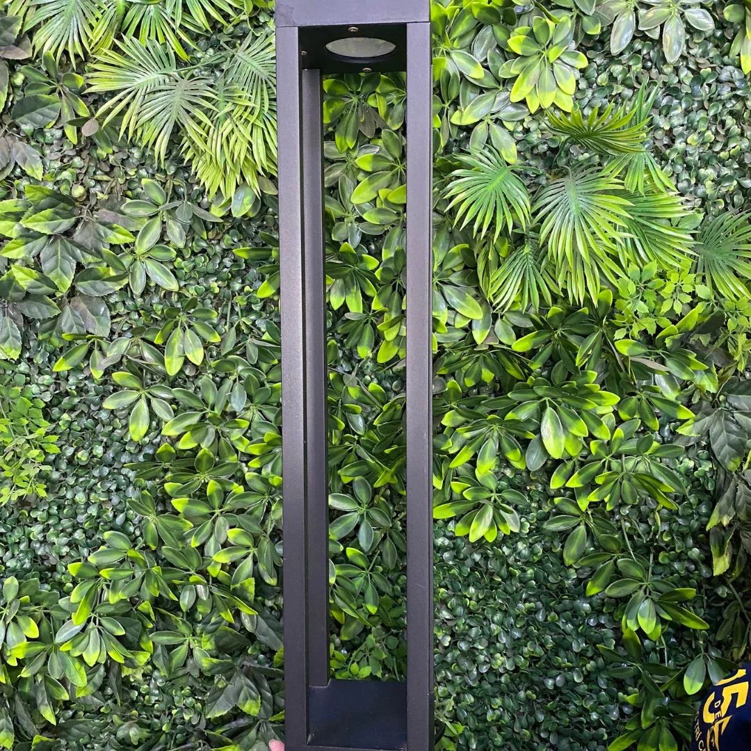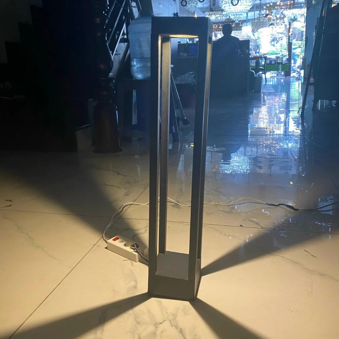 Đèn Trụ DT12 thu hút ở sự tối giản nhưng không hề đơn điệu. Phần thân được thiết kế như một khối đứng mảnh, tạo hình khung hộp vuông rỗng bên trong, mang đến cảm giác gọn gàng và rất kiến trúc. Đây là kiểu dáng hiếm khi lỗi thời vì nó không phụ thuộc vào chi tiết cầu kỳ, mà tập trung vào tỷ lệ đẹp và đường nét rõ ràng. Khi bố trí theo hàng ở lối đi hoặc đặt riêng ở một góc sân, chiếc đèn tạo nên nhịp điệu thị giác rất tốt, giúp không gian ngoài trời có chiều sâu hơn vào buổi tối.