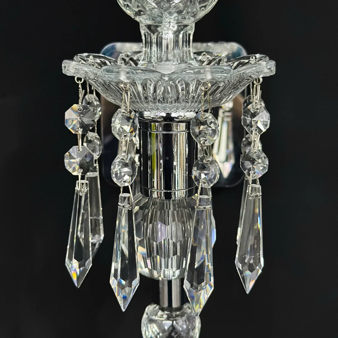 Đèn Tường Pha Lê VDC9803 mang cảm giác sang trọng nhờ phần thân pha lê trong suốt được tạo hình tinh xảo, giúp đèn nhìn “nhẹ” và thanh khi treo trên tường. Phía dưới là các chi tiết pha lê rủ, kết hợp thanh pha lê dài tạo hiệu ứng bắt sáng đẹp, làm mảng tường có chiều sâu hơn khi lên đèn.