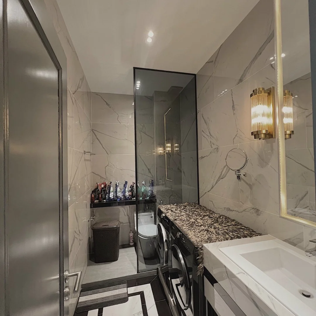- Tông vàng đồng và pha lê là sự kết hợp đẹp, phù hợp với nội thất hiện đại, thanh lịch hoặc luxury nhẹ.