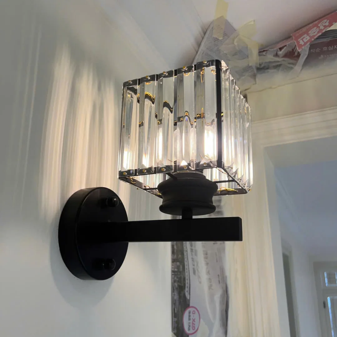 Về chất liệu, sản phẩm sử dụng pha lê ở phần chao kết hợp với kim loại màu vàng đồng ở đế và tay đèn. Pha lê giúp ánh sáng tỏa ra đẹp hơn, tạo cảm giác ấm và dịu, không quá gắt khi dùng trong phòng ngủ hay lối đi. Phần kim loại giúp đèn vững chắc khi lắp đặt, đồng thời nâng tổng thể sản phẩm theo hướng sang trọng, tinh tế và dễ kết hợp với nhiều phong cách nội thất hiện nay.