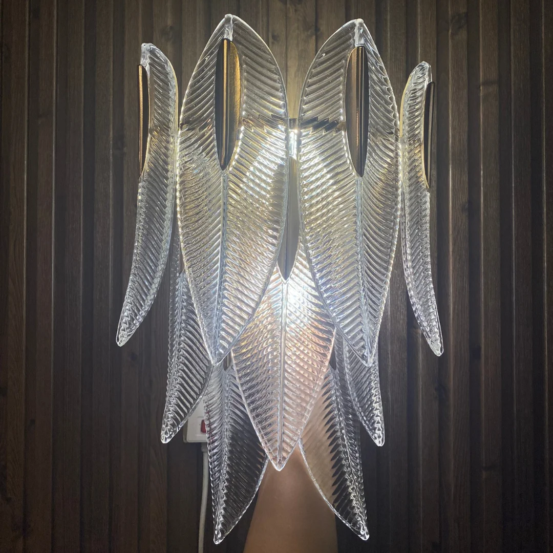 Điểm nổi bật của Đèn Tường Pha Lê VPL9663 là tạo hình như những cánh lá hoặc cánh quạt xếp lớp quanh nguồn sáng trung tâm. Nhờ cấu trúc này, chiếc đèn có độ chuyển động thị giác rất đẹp, khiến bức tường không còn phẳng và đơn điệu. Dáng đèn cân đối, đầy đặn nhưng không nặng nề, rất phù hợp với những không gian cần một mẫu đèn decor nổi bật nhưng vẫn giữ sự thanh thoát.
