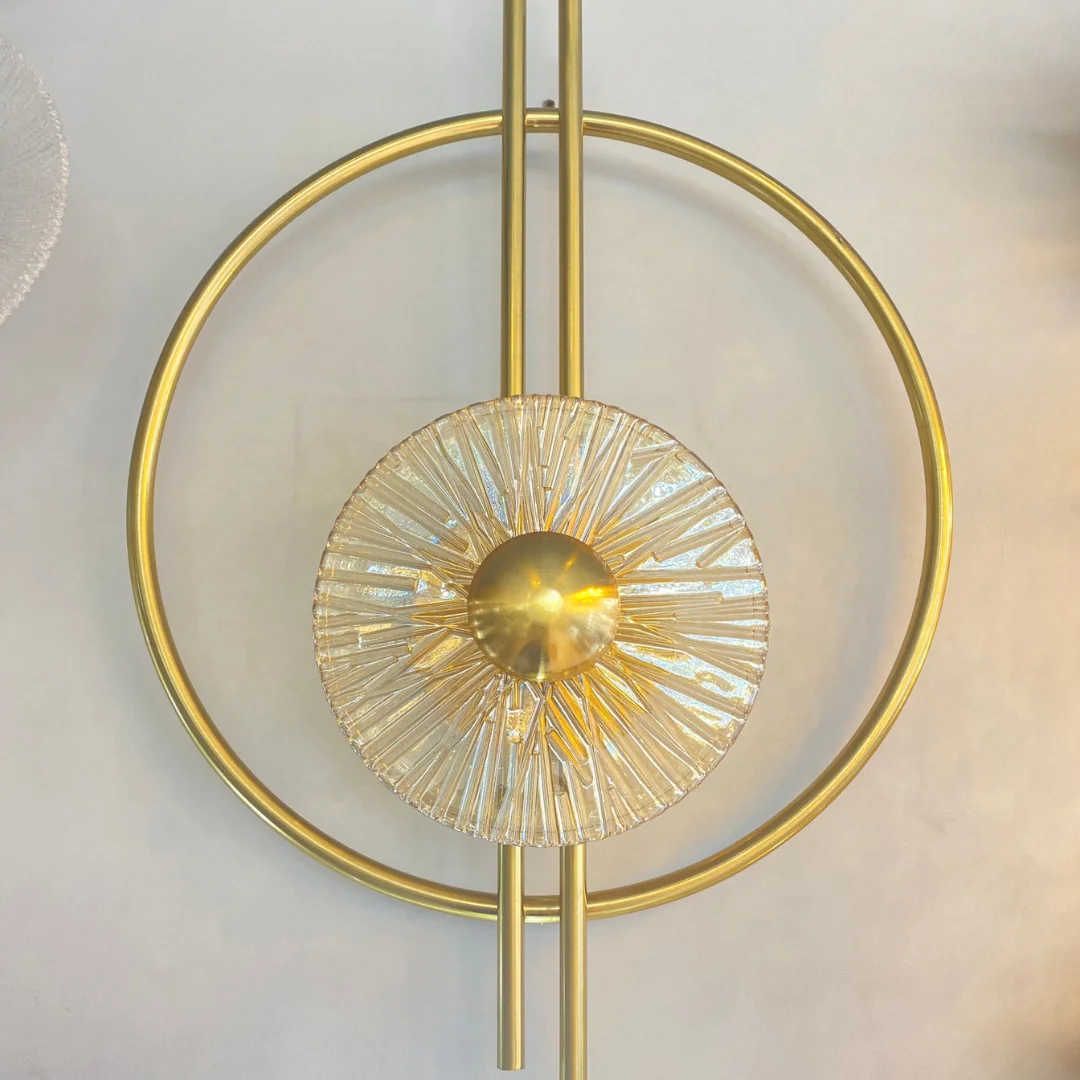 Về hoàn thiện, sản phẩm cho cảm giác nổi bật nhờ khung kim loại tông vàng kết hợp với chi tiết trung tâm dạng tỏa tia. Phần ánh sáng 3000K lan nhẹ quanh tâm đèn giúp hiệu ứng sáng nhìn mềm và cao cấp hơn. Đây là kiểu phối rất hợp với nội thất hiện đại, luxury nhẹ, tường màu be, xám sáng, nâu gỗ hoặc các không gian cần một mẫu đèn mang tính decor rõ.