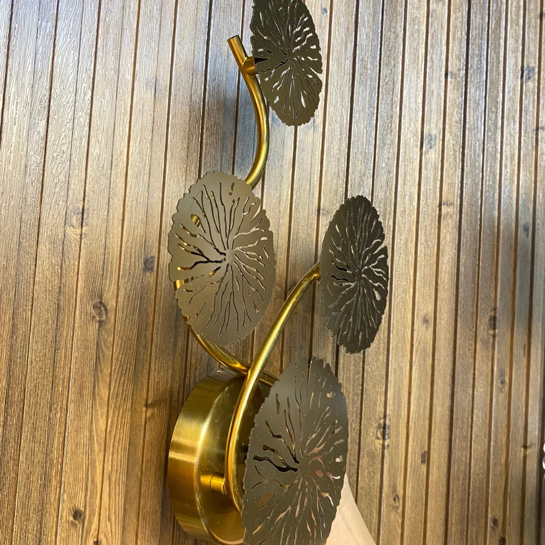 Về chất liệu hoàn thiện, nhìn từ ảnh có thể thấy mẫu này sử dụng khung kim loại tông vàng với bề mặt tạo họa tiết xuyên sáng khá tinh xảo. Chính chi tiết này giúp ánh sáng không bị cứng mà có độ loang nhẹ, tạo cảm giác ấm và sang. Đây là kiểu thiết kế phù hợp với nội thất hiện đại, phòng ngủ phong cách boutique, căn hộ cao cấp hoặc những không gian yêu cầu một món decor vừa đẹp vừa có chiều sâu.