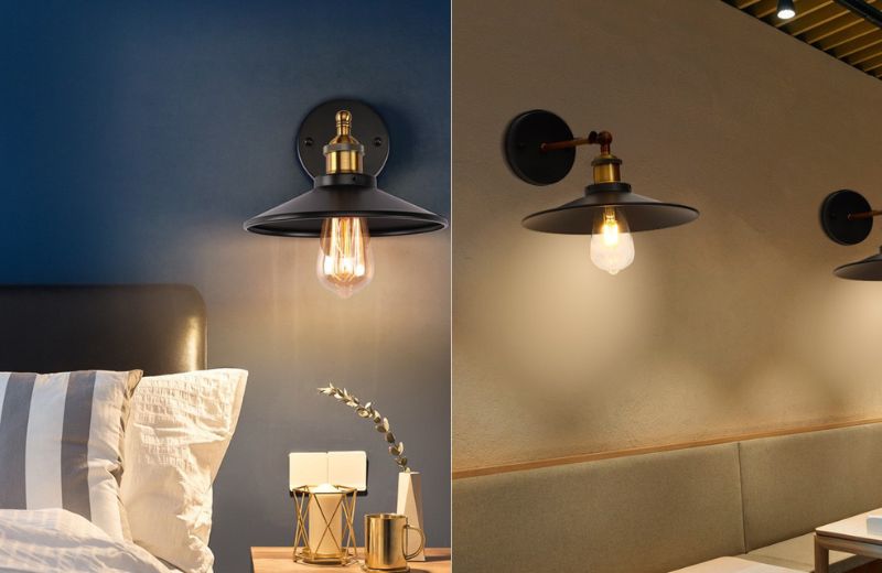 Đèn Tường VT01 giữ dáng industrial cổ điển với chụp kim loại loe bản rộng hoặc chóa côn úp (chóa cúp) cho ánh sáng chiếu xuống tập trung, tạo vùng sáng ấm và gọn. Thân đèn gắn tường tròn, tay đỡ kim loại khỏe khoắn, phối đui E27 mạ đồng giả cổ làm điểm nhấn. Toàn bộ khung kim loại sơn tĩnh điện chống trầy và bền màu, dễ phối từ tường bê tông, gạch thô đến gỗ sơn trắng.