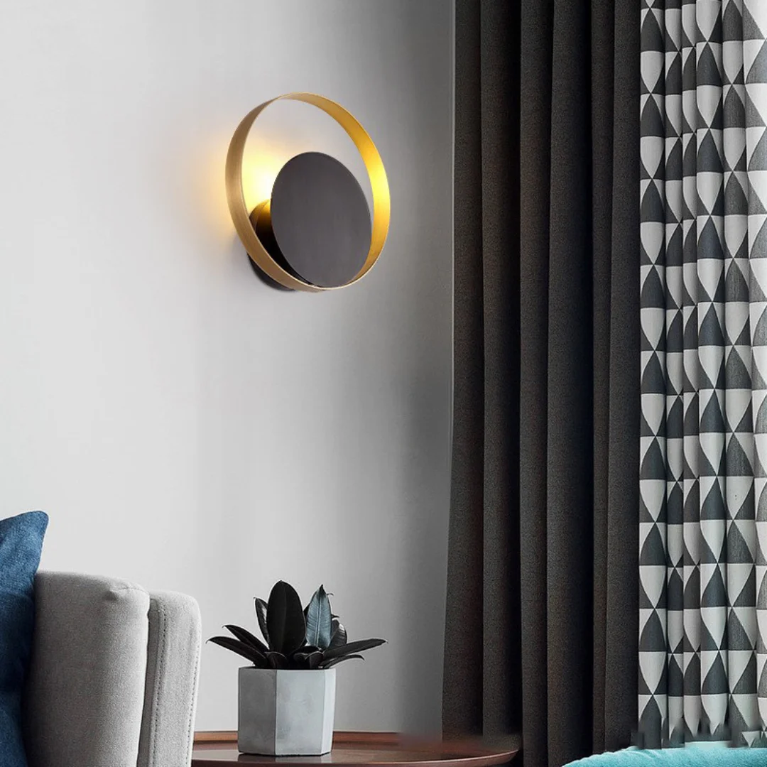 Điểm nổi bật của Đèn Tường VT72 nằm ở cấu trúc hình học rất rõ ràng. Phần khối tròn màu đen phía trước tạo cảm giác chắc và sâu, trong khi vòng tròn ánh vàng phía sau đóng vai trò như một lớp nền giúp tổng thể chiếc đèn trở nên nổi bật hơn. Cách xử lý hình khối này mang đến vẻ đẹp hiện đại, sạch mắt và rất phù hợp với những không gian đang theo đuổi phong cách decor tinh gọn nhưng không đơn điệu. Đây là kiểu đèn đặc biệt hợp với phòng khách, khu vực sofa, hành lang hoặc mảng tường trang trí cần một chi tiết mang tính tạo hình.